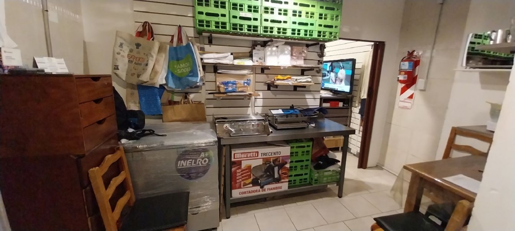 2 heladeras exhibidoras bateas, 1 freezer pozo, 3 aires acondicionados Split, 2 cortadoras de fiambre, 2 balanzas eléctricas, 1 mostrador de caja, estanterías en madera varias, 1 mueble isla, 1 mueble tipo tribuna, 1 mueble barra, cámaras de seguridad, 1 termoselladora, 1 envasadora en vacío, 1 mesa de trabajo en acero inoxidable 2 marquesinas, 2 toldos.