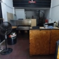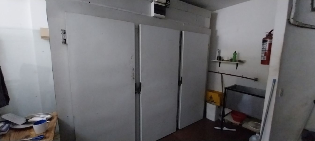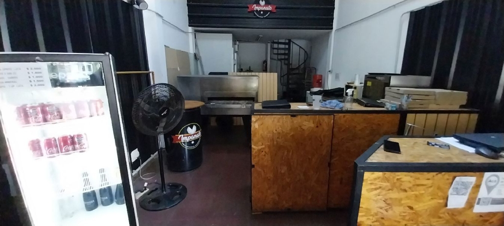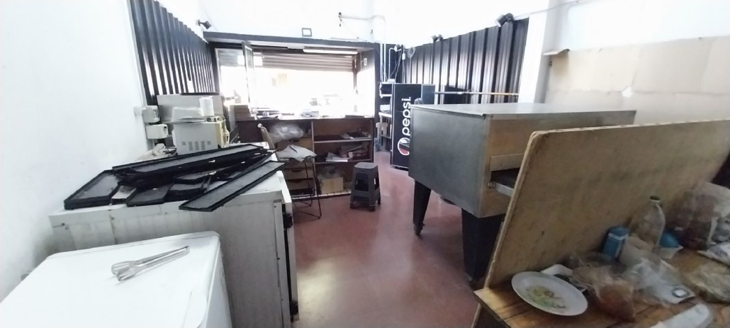 1 batea exhibidora con sistema de calefacción a lámparas eléctricas, 2 mostradores, 1 mesa de trabajo en acero inoxidable, 1 horno a cinta, 1 horno convector eléctrico, 1 freezer, 1 heladera mostrador de 2 puertas, 1 cámara frigorífica de 3 puertas, 1 carro latero, latas varias, 2 bancos largos, 2 tambores mesas altas, 1 notebook, 1 ventilador de pie.
